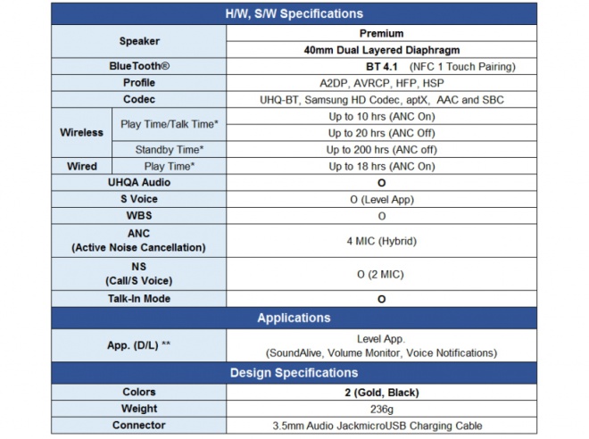 - UHQ Audio: com os novos fones Level On Wireless Pro, Samsung introduziu a tecnologia Ultra High Quality Audio (UHQA) que oferece uma maior riqueza sonora, com definição superior. A qualidade sonora será a mesma, estando com o cabo conectado ou não. Com o uso de diafragma duplo, o novo fone entrega um som mais equilibrado, seja em graves, médios ou agudos.